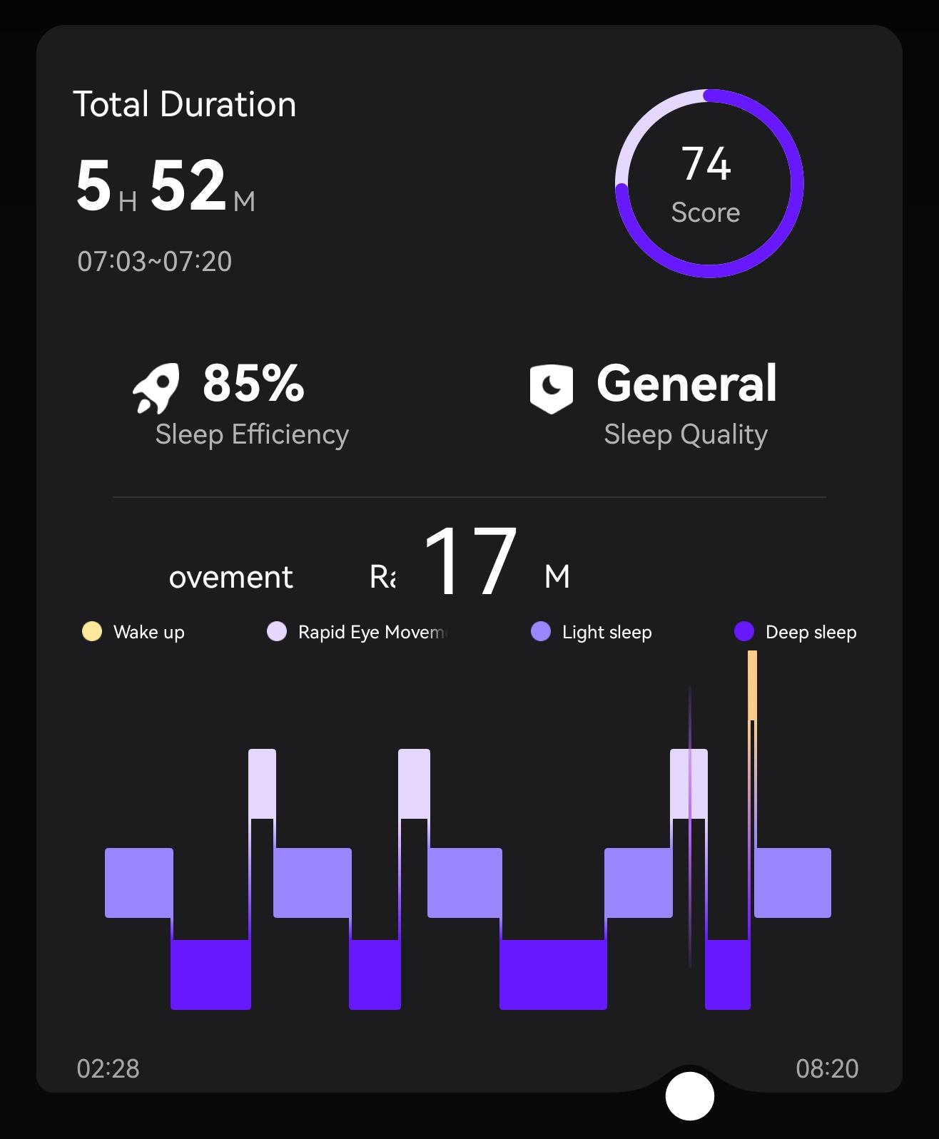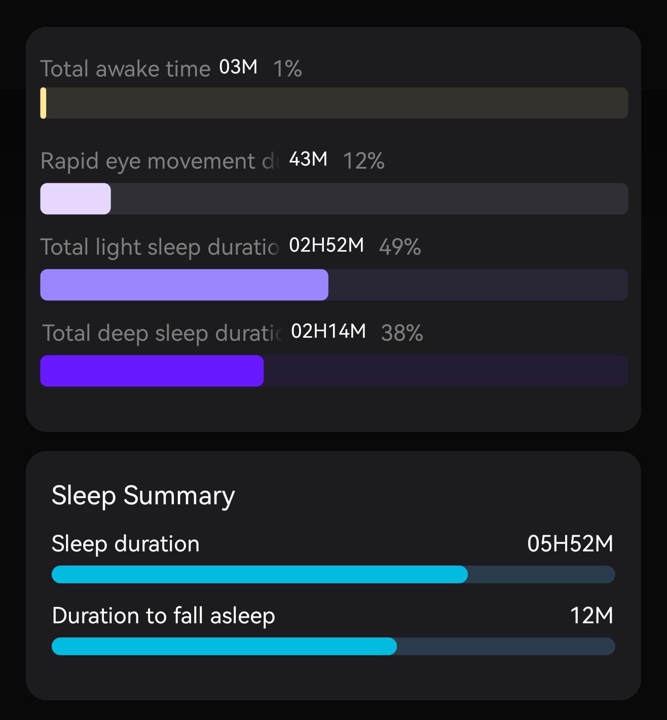 Sie können den prozentualen Anteil jeder Schlafphase klar einsehen.