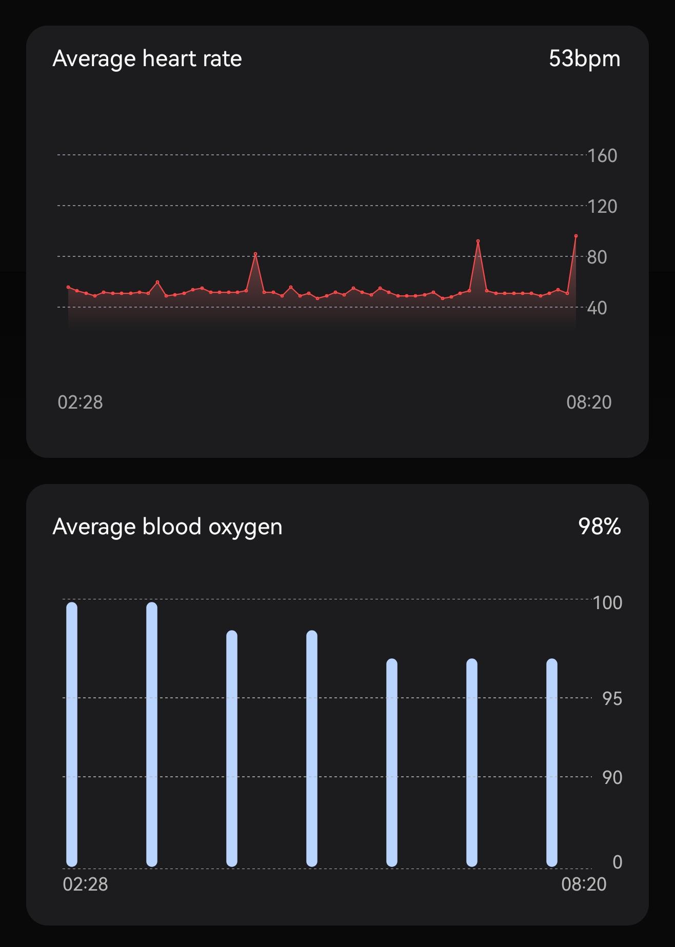 Sie können die Schwankungen Ihrer Herzfrequenz und Ihres Blutsauerstoffs während des Schlafs sehen.