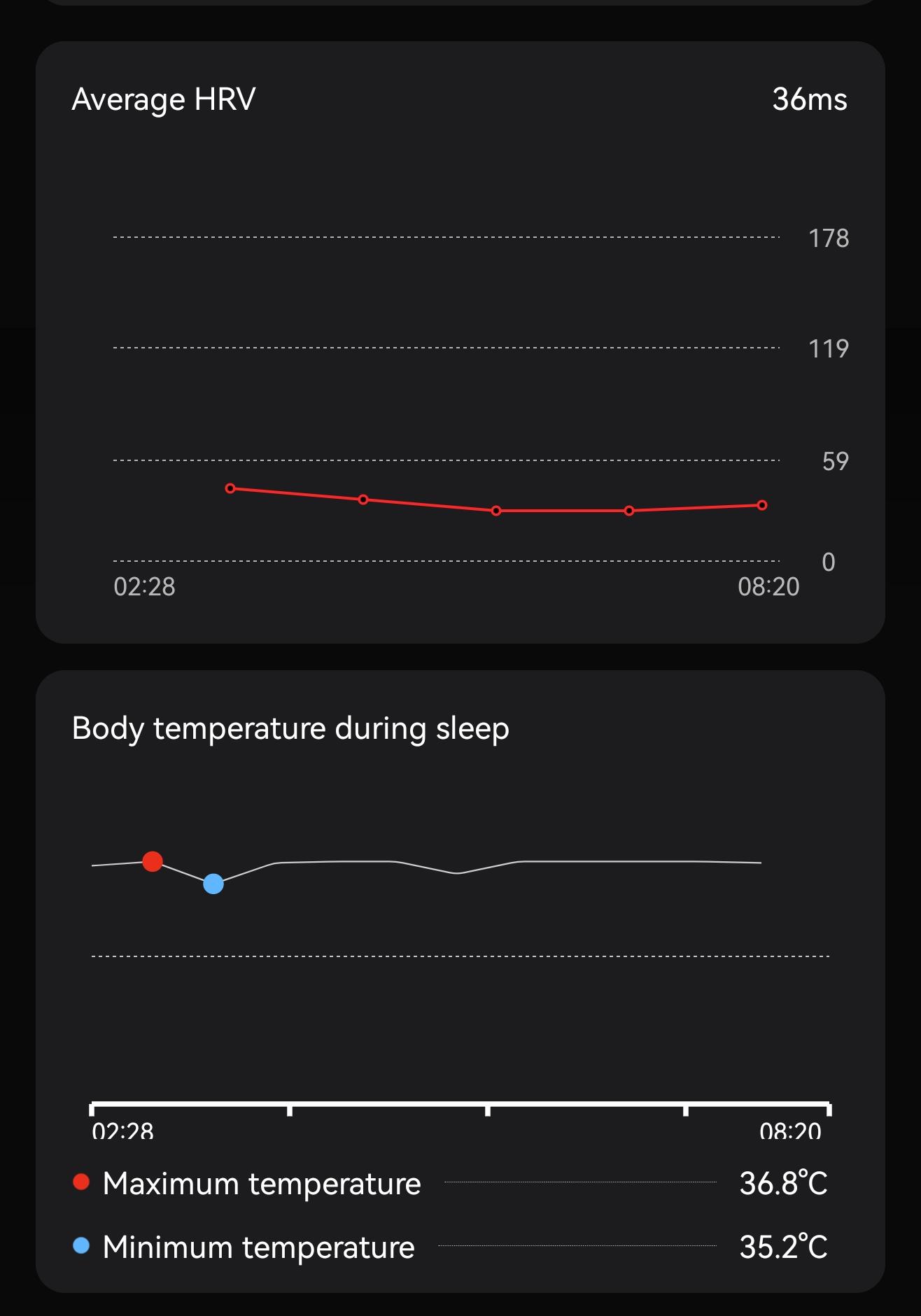 Sie können die Schwankungen Ihrer HRV und Körpertemperatur während des Schlafs sehen.